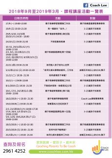 2018年9月至2019年3月 - 課程講座活動一覽表